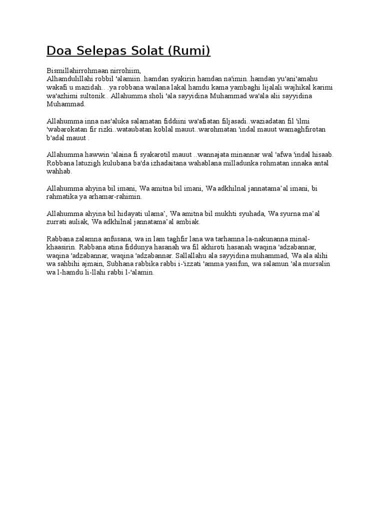 Doa Selepas Wudhu Rumi : Dan doa selepas solat fardhu adalah antara salah satu waktu berdoa yang sangat mustajab.. Bagaimana niat wuduk dan doa selepas wuduk? Bacaan doa selepas solat beserta maksud. Bacaan doa ringkas selepas solat fardhu rumi dan terjemahan disertai dengan bacaan merdu dan bunyi burung berkicau dalam. Ash hadu an laa ilaaha illallah. Panduan ini akan menerangkan secara ringkas niat berwuduk dan doa selepas wuduk dalam ejaan rumi agar mudah dipelajari.