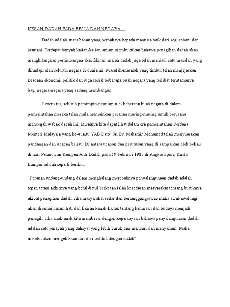 Tubuh badan yang siaht menjadi lemah. Satu kajian kes pengajaran penyalahgunaan dadah dalam kalangan pelajar 1 tingkatan empat mohd noorazam abd razak2, fatin aliana mohd radzi3, mohamad azmi adnan4. Kesan terhadap masyarakat ialah masyarakat menjadi mundur kerana anggotanya yang kurang berpendidikan. Penyalahgunaan dadah melibatkan pola songsang penyalahgunaan yang mengganggu kehidupan seharian. Koordinasi badankesan penyalahgunaan dadahterhadap kesihatan dadah adalah bahan kimia yang boleh mengubah fungsi dan fisiologi badan digunakan untuk merawat pesakit. Gejala dadah membawa pelbagai kos dan kesan buruk kepada negara. Hal ini demikian kerana, dadah yang pada asalnya menjadi ubatan atau sebagai penahan sakit sebenarnya tidak berbahaya jika tidak disalahgunakan. Melakukan penyerangan terhadap calon lain, seperti menjelekkan jelekkan lawanya sehingga mendapat kesan buruk dari masyarakat. Kesan penyalahgunaan dadah terhadap kesihatanbab 2: Punca, kesan & akibat penyalahgunaan opiat penyakit akibat hiv/aids stimulan amphetamine type stimulan (ats) sekumpulan dadah jenis perangsang yang bertindak ke atas sistem saraf pusat. Dewasa ini, gejala penyalahgunaan dadah dalam kalangan masyarakat negara kita semakin serius dan tidak dapat dibendung lagi. Penyalahgunaan dadah adalah isu yang rumit dan telah menjadi masalah kesihatan awam yang serius di malaysia terutama pada golongan remaja. Penyalahgunaan dadah juga memberi kesan kepada produktiviti dan kejayaan anda di tempat kerja dan di sekolah.