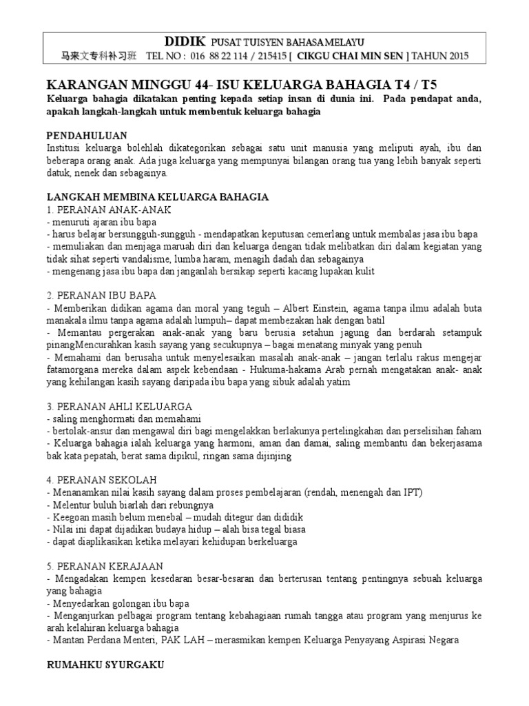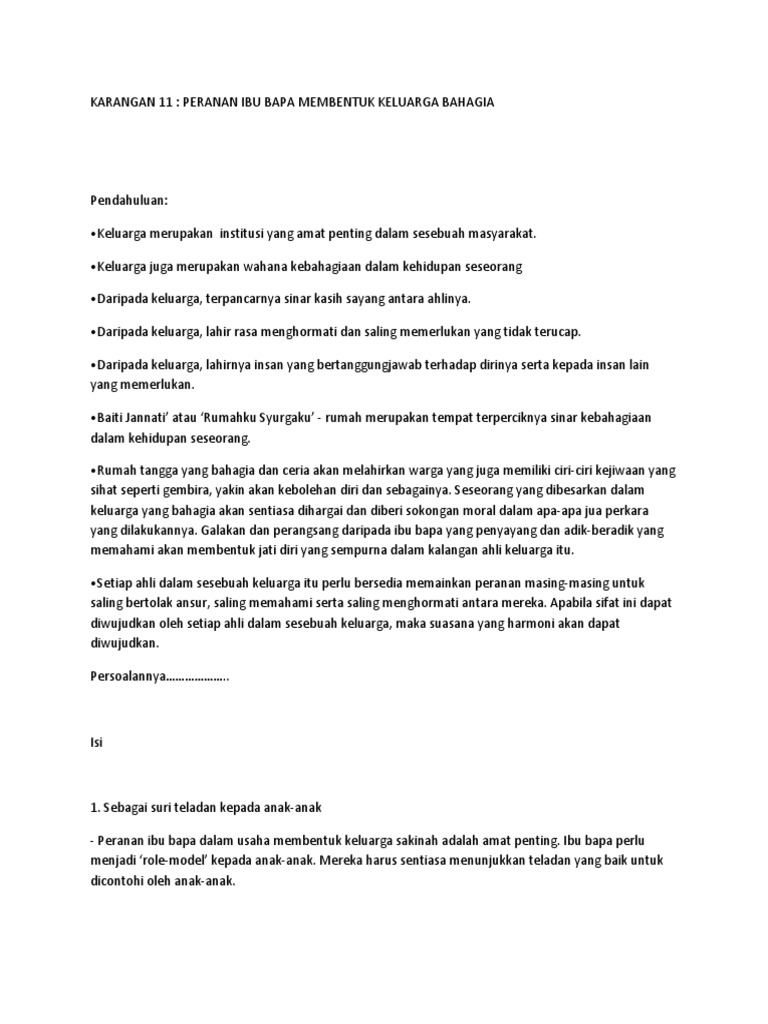 Peranan Ibu Bapa Dalam Menangani Masalah Sosial Remaja from reader011.staticloud.net Oleh karena itu, kasih sayang keluarga menjadi faktor yang sangat penting untuk dimiliki dan dipupuk terus menerus. Anda sudah sering membaca atau mendengar kisah imajiner ini. Berbagai peranan yang terdapat didalam keluarga adalah sebagai berikut : Biasanya keluarga bahagia dapat dibentuk melalui sikap ahli keluarga yang mempunyai sah siah yang baik. Tanggungjawab membentuk rumahtangga yang harmoni tanggungjawab membentuk sesebuah keluarga merupakan tanggungjawab bersama. Sebagai seorang ketua keluarga hendaklah menunjukkan dan mempamerkan contoh ibu bapa perlu memperuntukkan masa untuk bersama ahli keluarga. Kepentingan memiliki keluarga yang bahagia dan harmoni. Contoh karangan peranan ahli keluarga dalam membentuk keluarga yang bahagia dan harmoni dalam kehidupan.