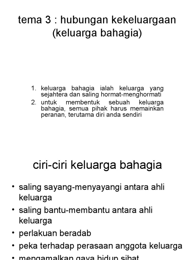 Keluarga yang bahagia akan sentiasa menjaga maruah ahli keluarganya. Berbagai peranan yang terdapat didalam keluarga adalah sebagai berikut : Menghabiskan waktu cuti dengan berkelah atau berekreasi bersama keluarga akan memberikan peluang kepada ahli keluarga untuk berhibur di samping meluangkan masa untuk mengeratkan hubungan di antara mereka. Keluarga yang bahagia akan sentiasa menjaga maruah ahli keluarganya. Tanggungjawab membentuk keluarga bahagia tidak hanya bergantung pada satu pihak sebaliknya memerlukan kerjasama dan komitmen daripada sebagai konklusinya, dapat disimpulkan bahawa terdapat peranan pelbagai pihak selain ahli keluarga dalam usaha melahirkan keluarga bahagia. Pendidikan dini inilah yang kemudian membentuk orang tua dapat mempelajari cara mendidik anak. Peranan orang tua bagi pendidikan anak adalah memberikan dasar pendidikan pada ilmu pendidikan, keluarga adalah yang pertama memberikan pendidikan, sebab semua pengetahuan dan kepintaran manusia yang pertama. Keluarga bentukan (dyadic family) adalah keluarga baru yang terbentuk dari pasangan yang telah cerai atau kehilangan pasangannya. Untuk membentuk keluarga harmoni dan cemerlang semuanya perlulah bermula dari pembentukan asas rumahtangga. Keluarga yang bahagia akan sentiasa menjaga maruah ahli keluarganya. Shutterstock]/captionuntuk memahami perbedaan keluarga bahagia dan keluarga yang tampak bahagia, anda perlu membaca kisah keluarga david dan laura berikut ini terlebih dahulu. Ibu bapa memainkan peranan untuk mewujudkan keluarga bahagia. Allah yehuwa ingin kehidupan keluarga anda bahagia.